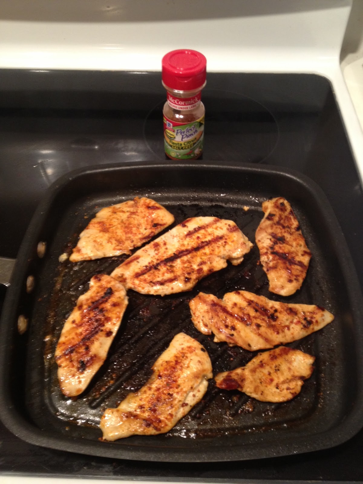 -Grill chicken breasts (I have a grill pan, which is the perfect option for easy kitchen cooking, yet still provides that fresh off the grill taste)