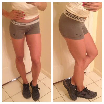 One of the top fears I hear regarding “bulk” is in the legs. As my legs have evolved through weight training, I’ve noticed a change in their composition. When my legs lacked muscle and had higher amount of fat, they appeared “wider” from the front and back views – with fat sitting on the insides of my thighs and on the side hip areas. However, through healthy eating and weight training, a reduction in body fat resulted in my legs appearing “smaller” from the front and back view and an increase in muscle was evident from the side view. Don’t let flexed pictures scare you! Build those muscles girls = curves in all the right places!